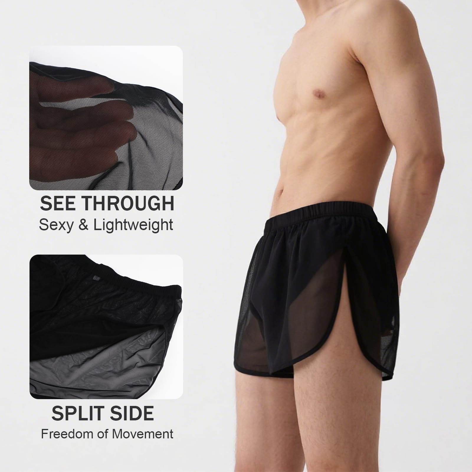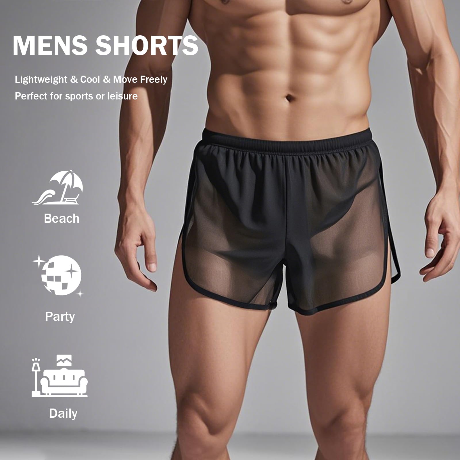 • SEE THRU MESH SHORTS: Countless small mesh accelerates air circulation, lightweight and quick-drying, moisture wicking and won't cause any stuffiness, enjoying the ultimate comfort, feel like wearing nothing.