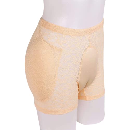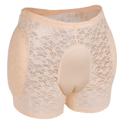 ZMASI Translucent Lace Underwear Men’s Hiding Gaff Panty Brief for Crossdresser, Padded Hips Enhancer with Removable Pads (XL) Nude