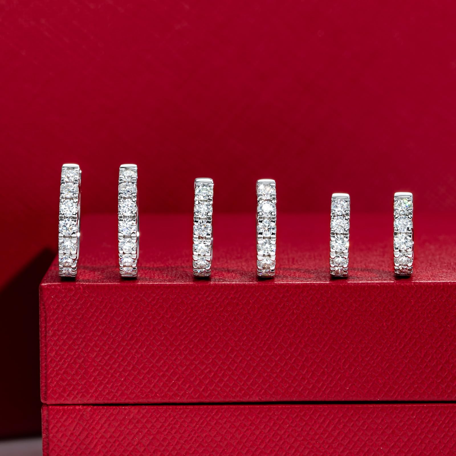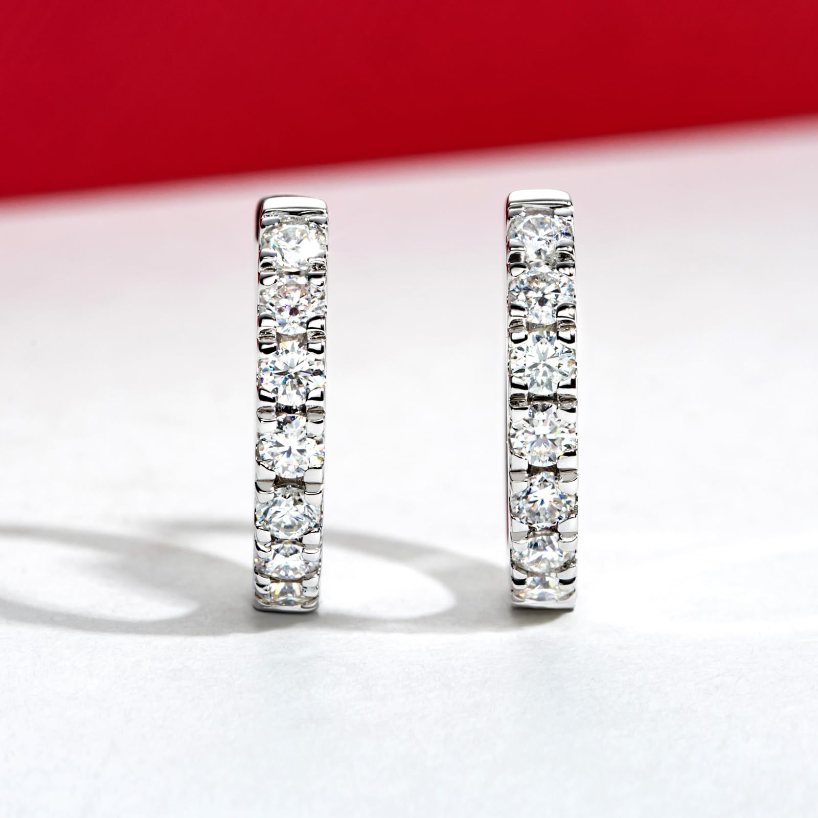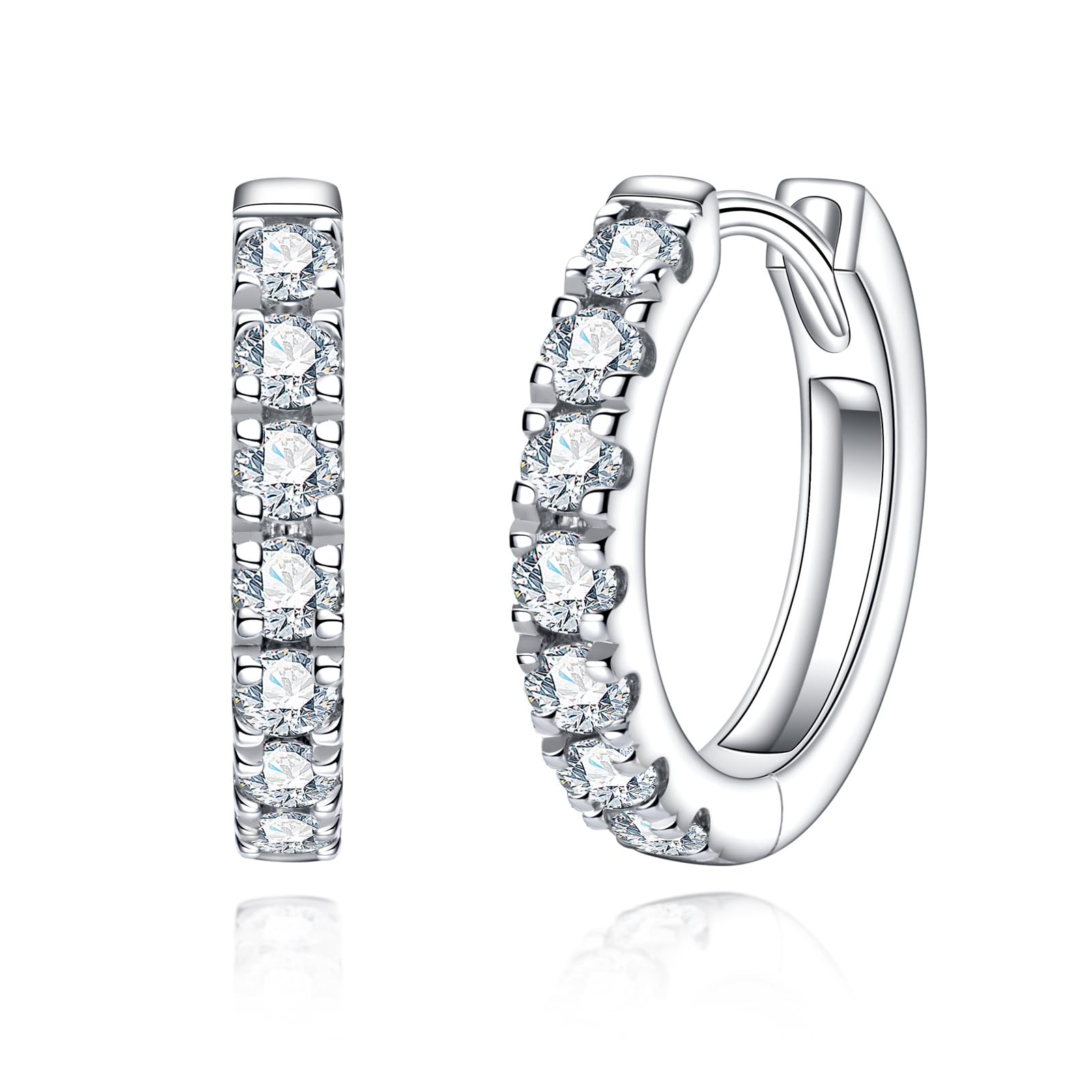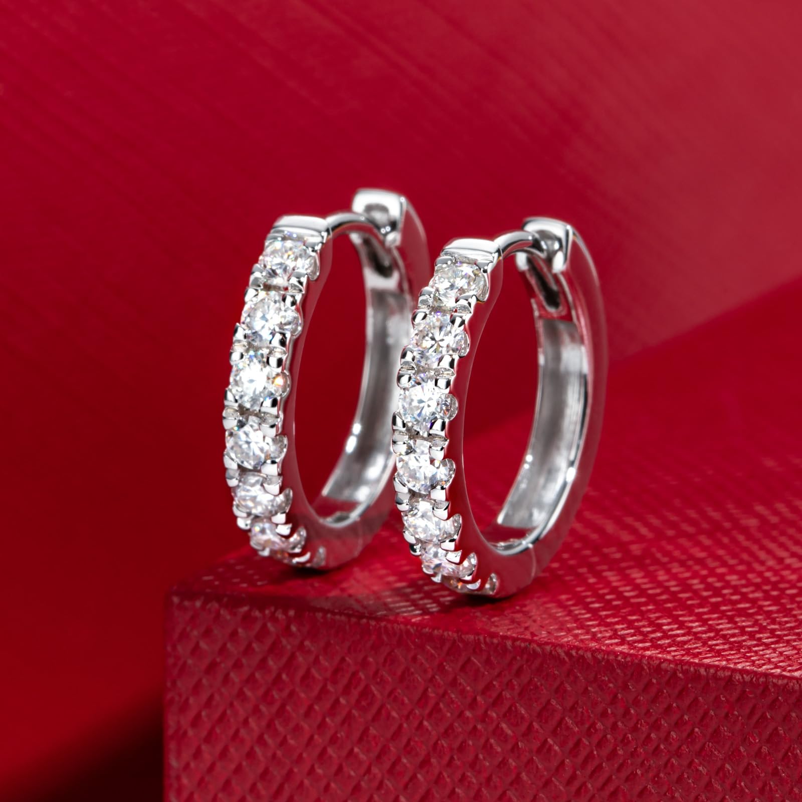 - 【CLASSIC DESIGN】: These are elegant hoop earrings, featuring 10pcs 0.06ct round brilliant cut moissanites set in solid 14k white gold. The moissanites are arranged in a shared prong setting around the hoop, maximizing their sparkle. The design is timeless and versatile, suitable for both everyday wear and special occasions. The secure closure ensures comfort and ease of wear, making these earrings a classic addition to any jewelry collection.