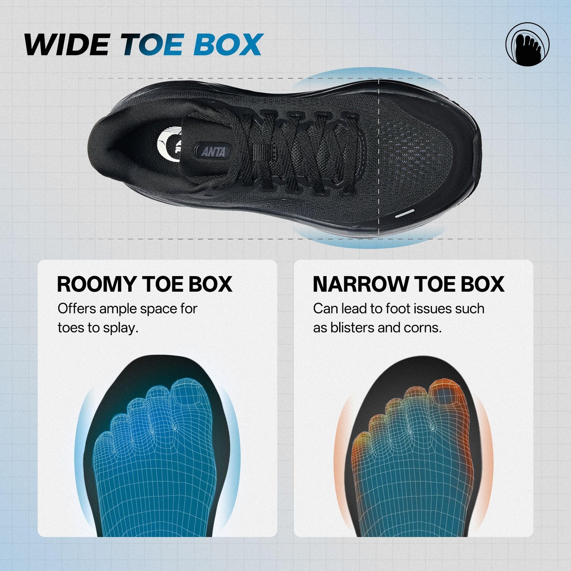 • [Wide Toe Box & All-day Comfort] Engineered with anatomical wide toe design for natural toe splay. The 6 mm drop of the running shoe combined with cloud-like memory foam insole that reduces foot fatigue during long-distance running, gym workouts or daily walking.