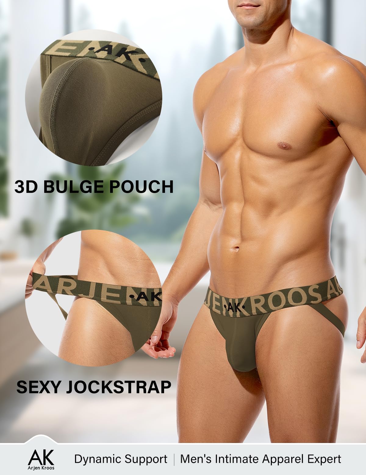 Arjen Kroos Jockstrap Athletic Supporters For Men, Cotton Workout Sport Underwear Jock Strap Green