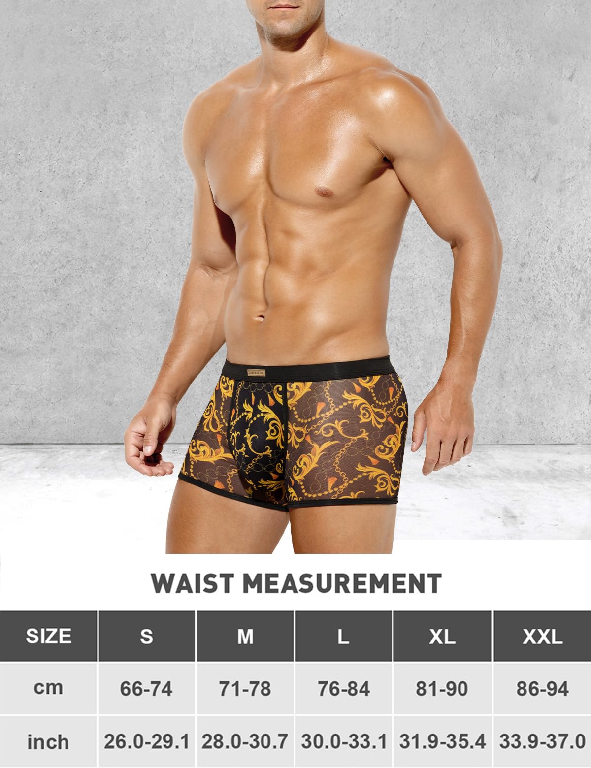 Arjen Kroos Men's Sexy Mesh Trunks Underwear Soft Breathable Boxer Briefs,GOLD CHAIN-AK3028,XX-Large