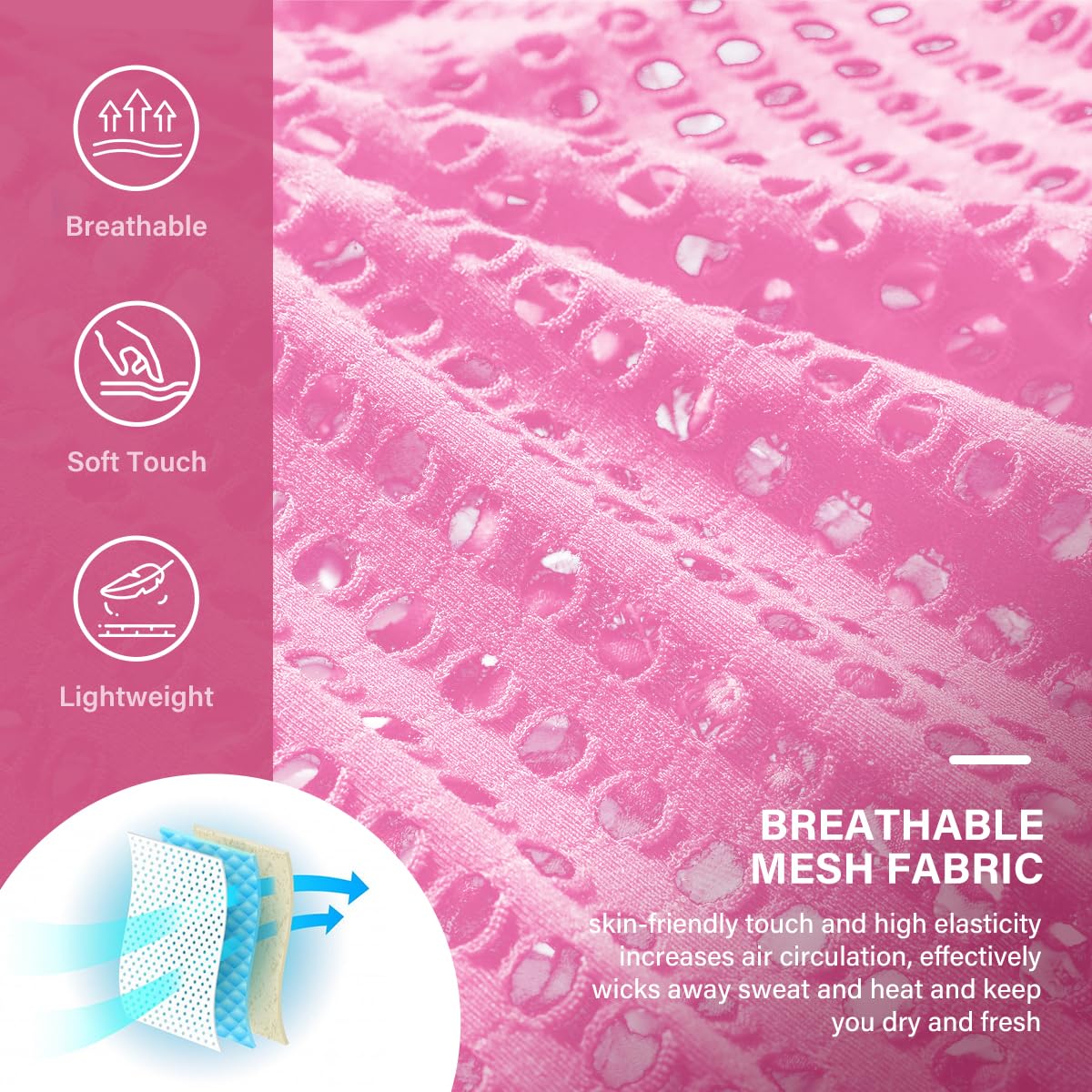 • All-over mesh material for superior ventilation,soft and stretchy.