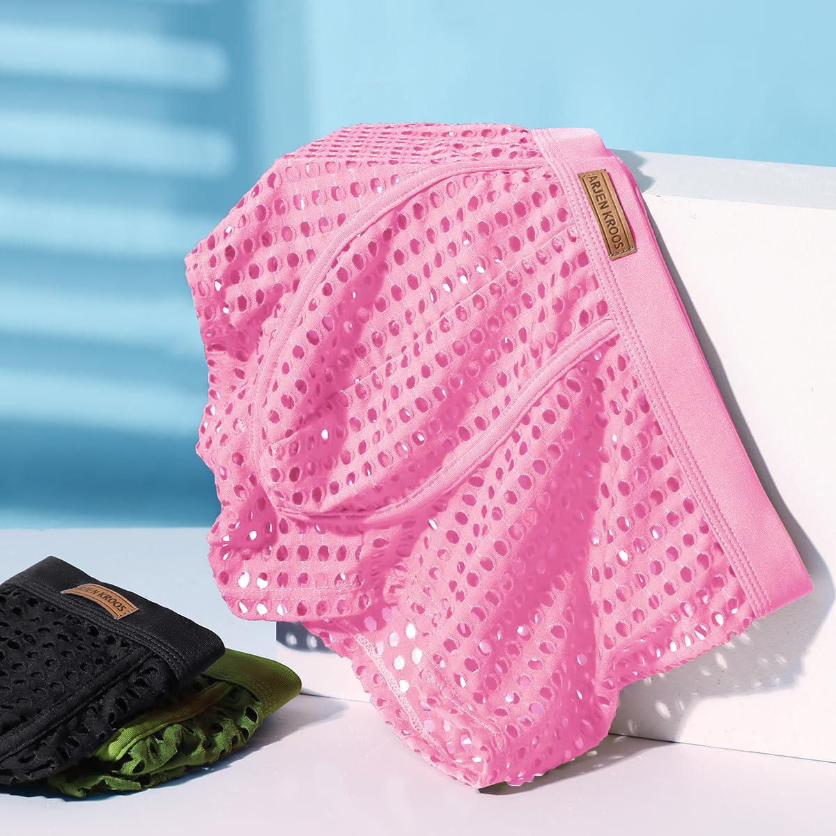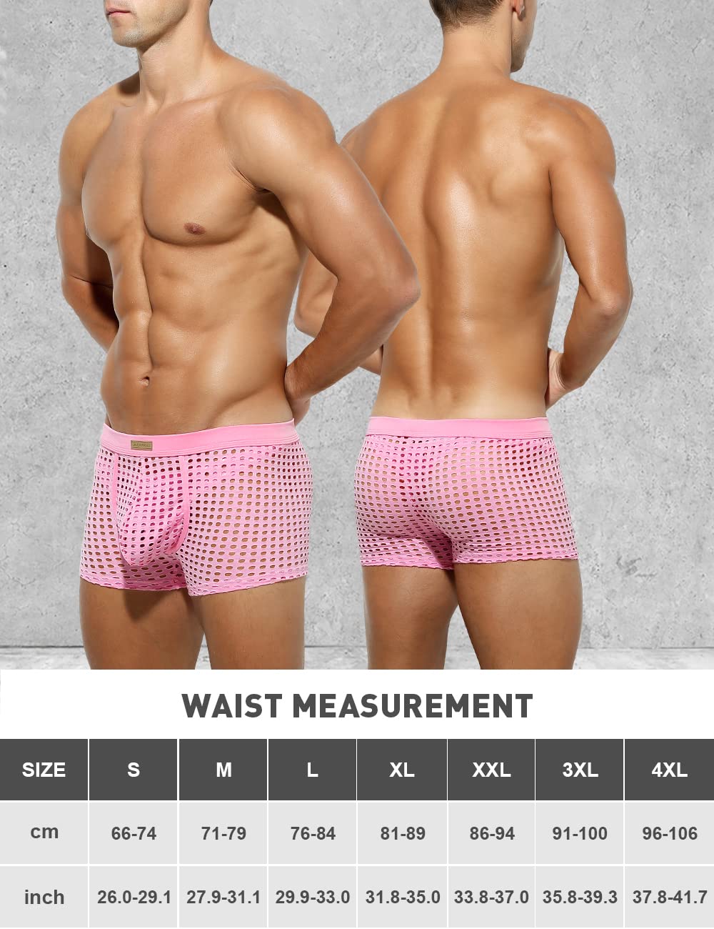 Arjen Kroos Men's Sexy Underwear Breathable Mesh Boxer Briefs Trunks,PINK-AK2060,XX-Large