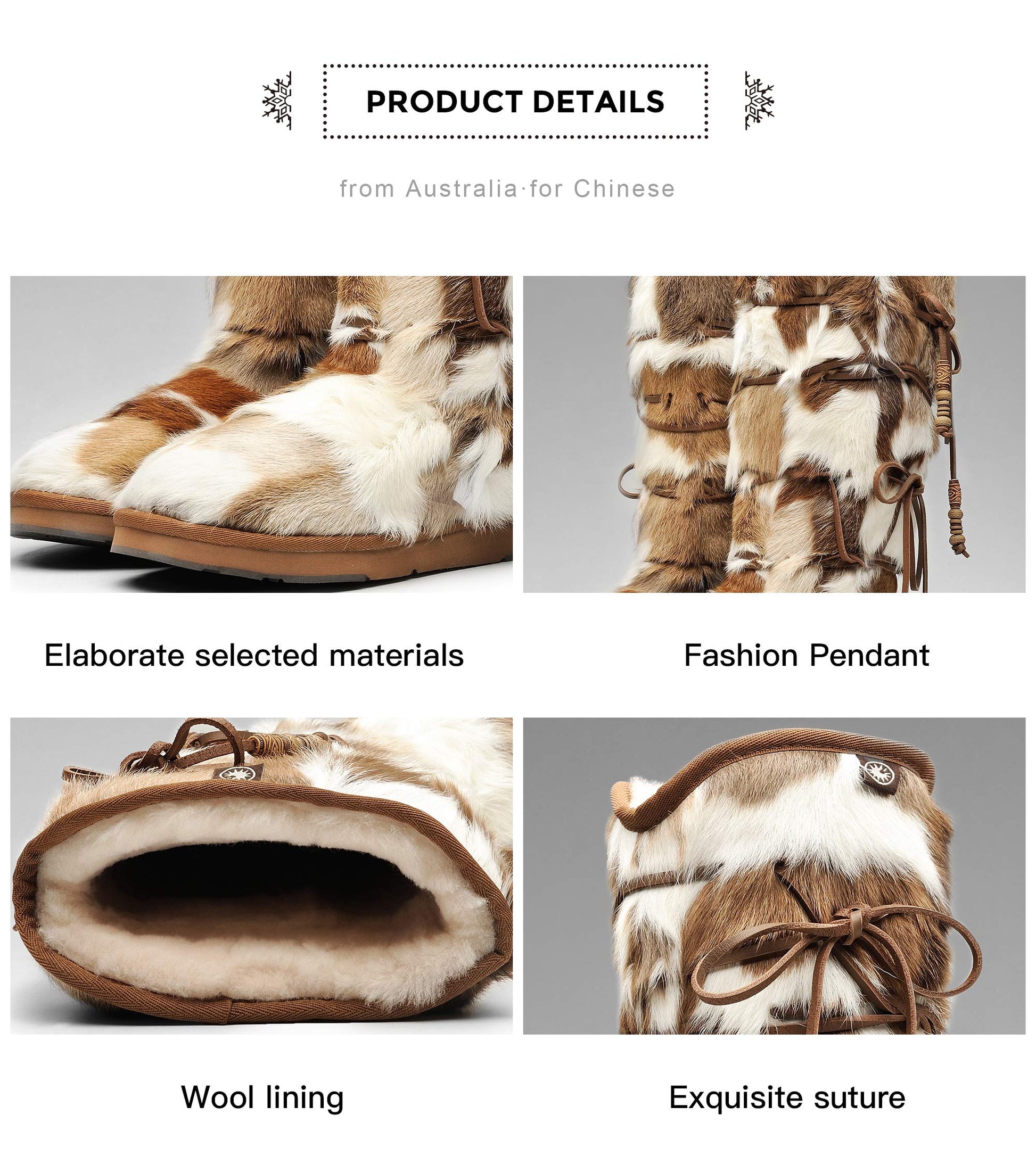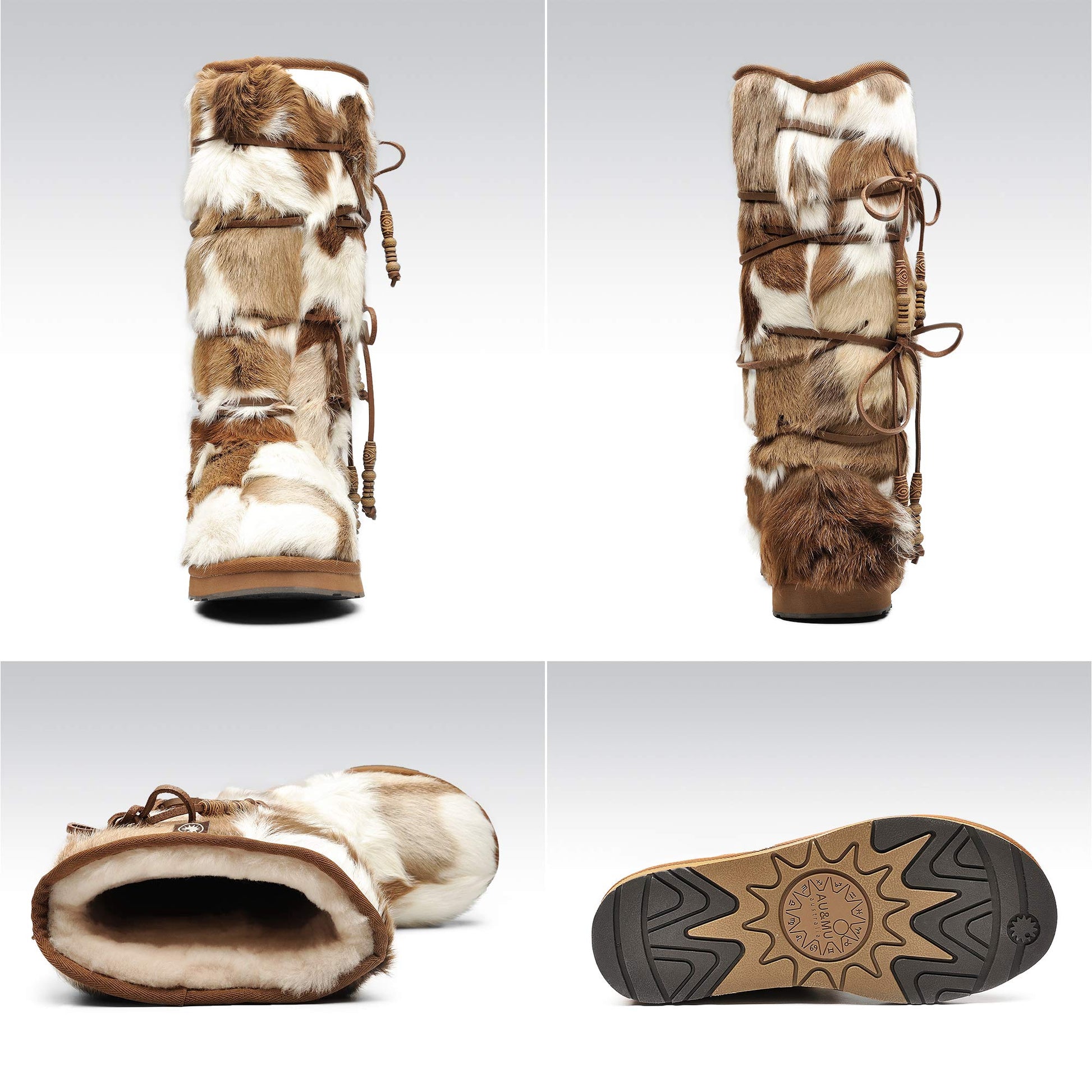 AUMU Womens Comfort Suede Fur Mid- Calf Winter Boots Chestnut Size 6