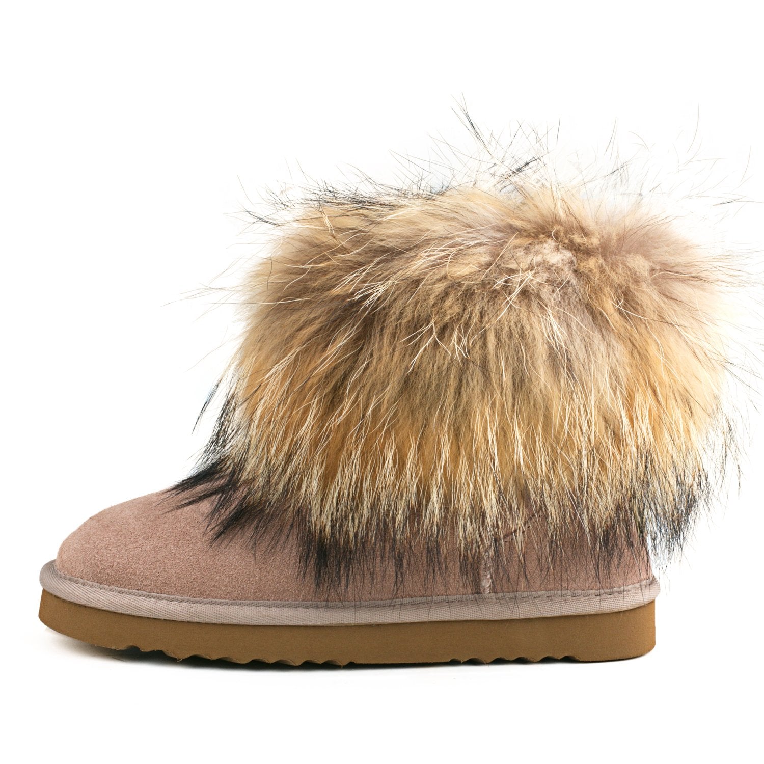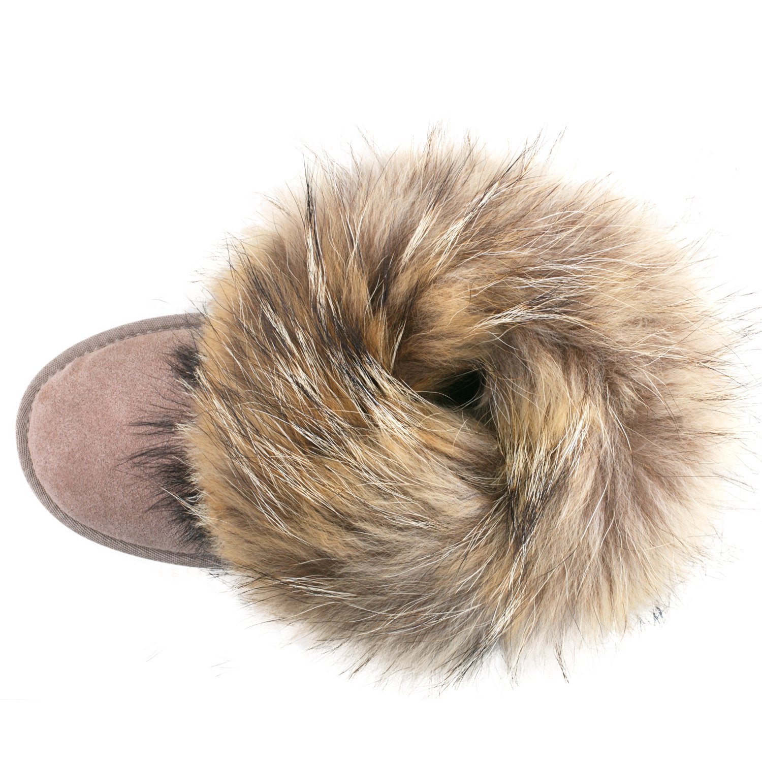 AUSLAND Genuine Suede Waterproof Boots for Women Furry Fur Winter Ankle Boots Warm Fluffy Snow Boot 9.5US Sand 99251 40EU