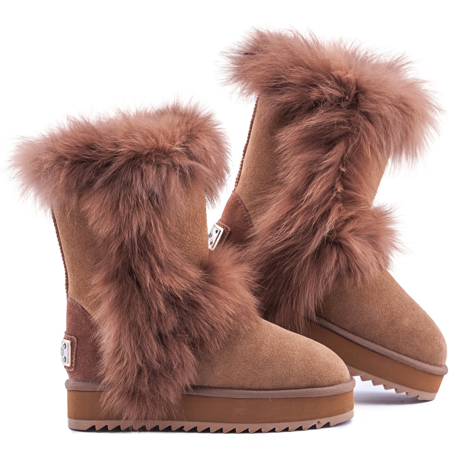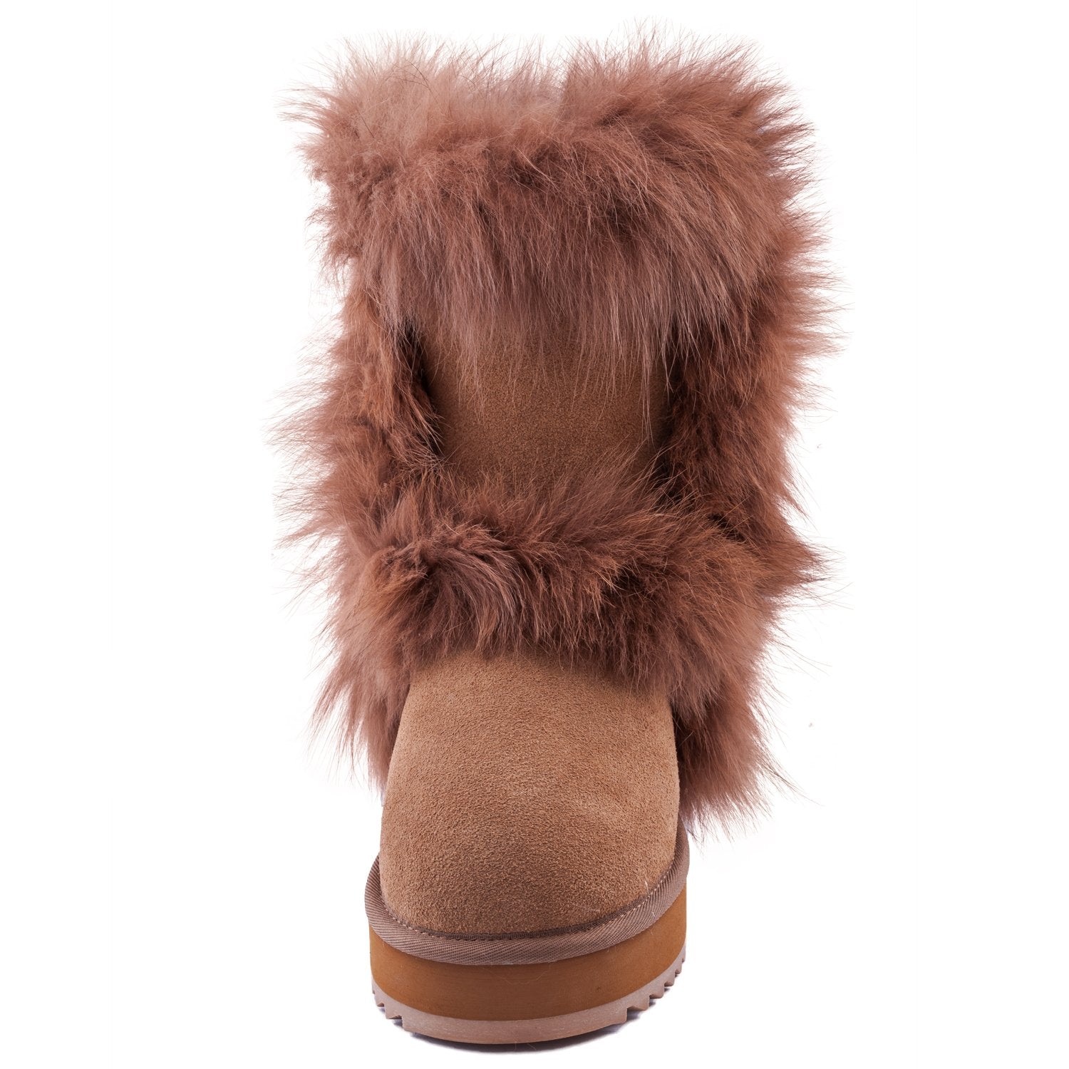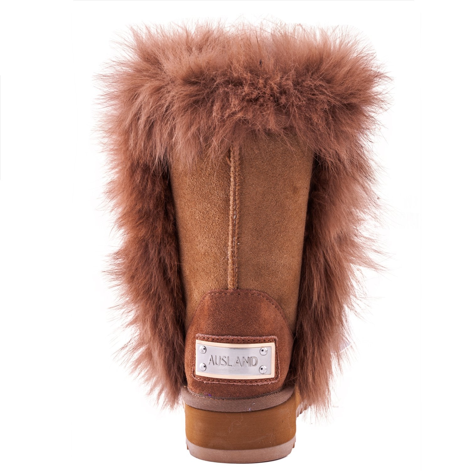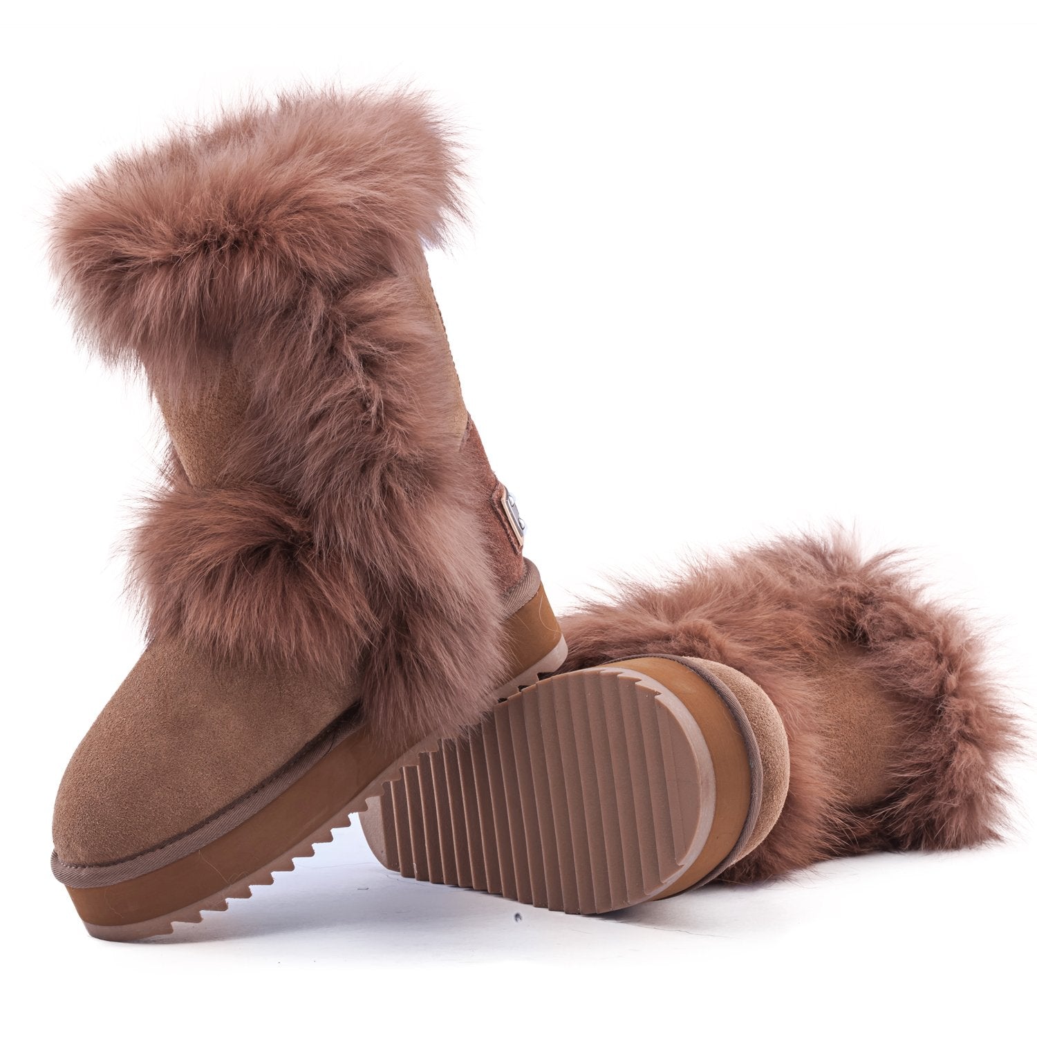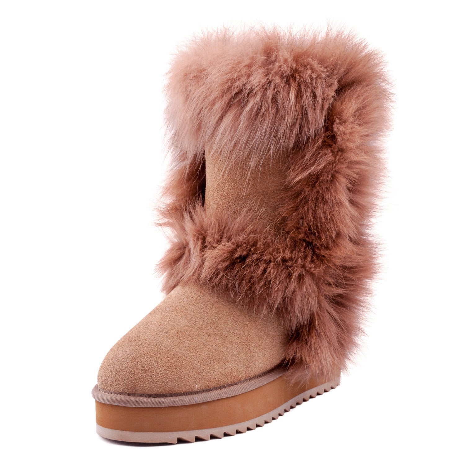 AUSLAND Waterproof Genuine Suede Platform Boots for Women Furry Winter Short Boot Ladies Fur Boots 4.5US Chestnut 99256 35EU