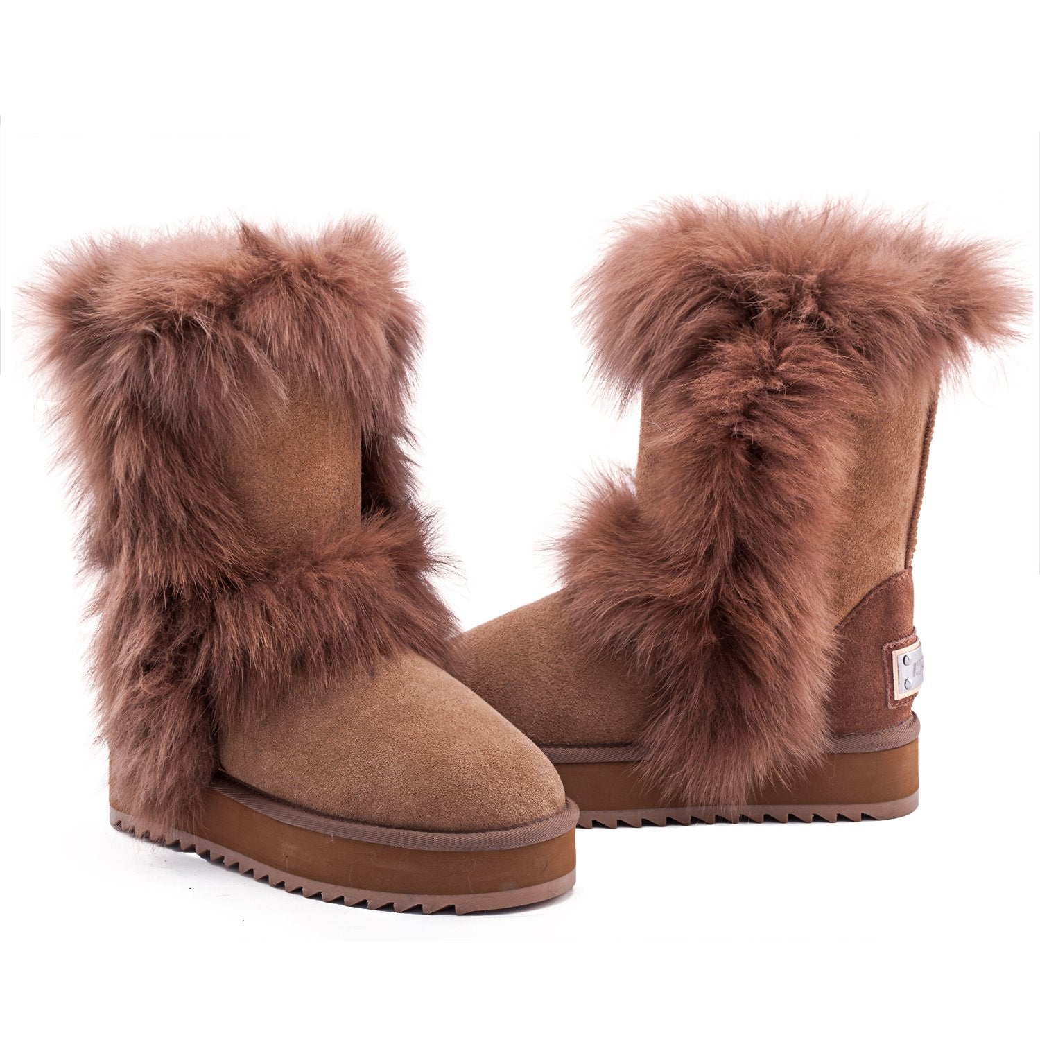 - Waterproof upper and thick and cozy fur lining could keep your feet from coldness and wind. Decorated with fox fur