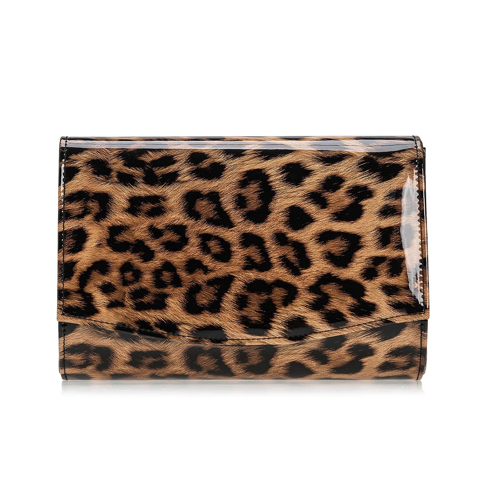 CHARMING TAILOR Patent Leather Flap Clutch for Women Classic Elegant Evening Bag Chic Dress Purse (Leopard)