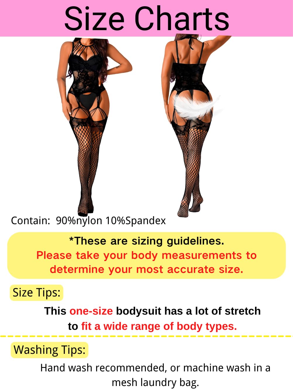 ChiaoLezhee Sexy Lingerie For Women, Lace Bodystocking, Fit All Size, Exotic Wear Dancer Dancewear Plus Fishnet Mesh Glow, Black