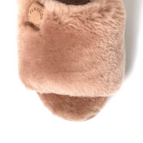 Dearfoams Women's Fireside Cairns Shearling Easy on/Off Slide Sandal Slipper, Driftwood, 7 W US