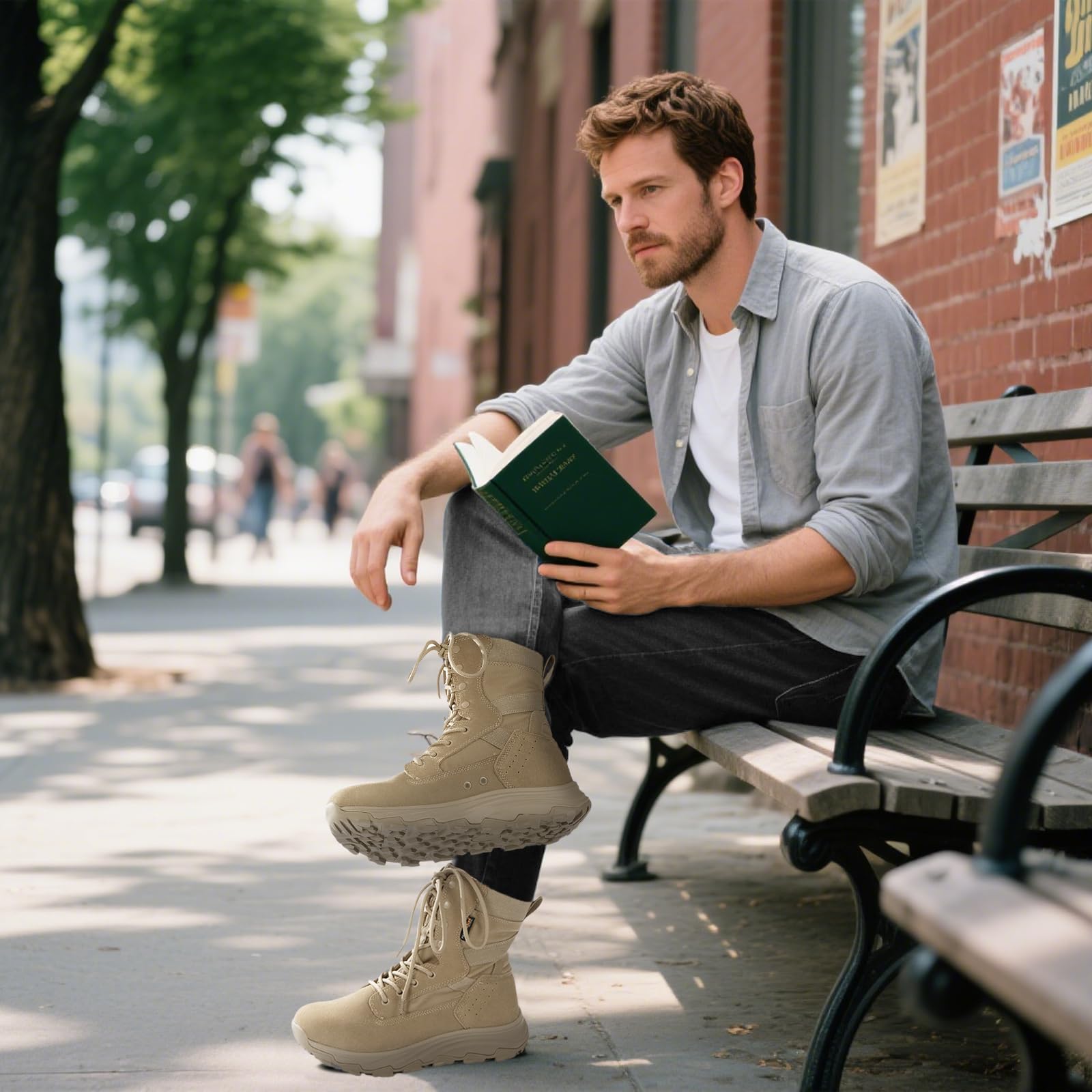 - DURABLE & PROTECTIVE UPPER: Crafted with genuine leather and rugged textiles, these combat boots men resist scratches and wear. A gusseted tongue keeps debris out, perfect for work boots for men.