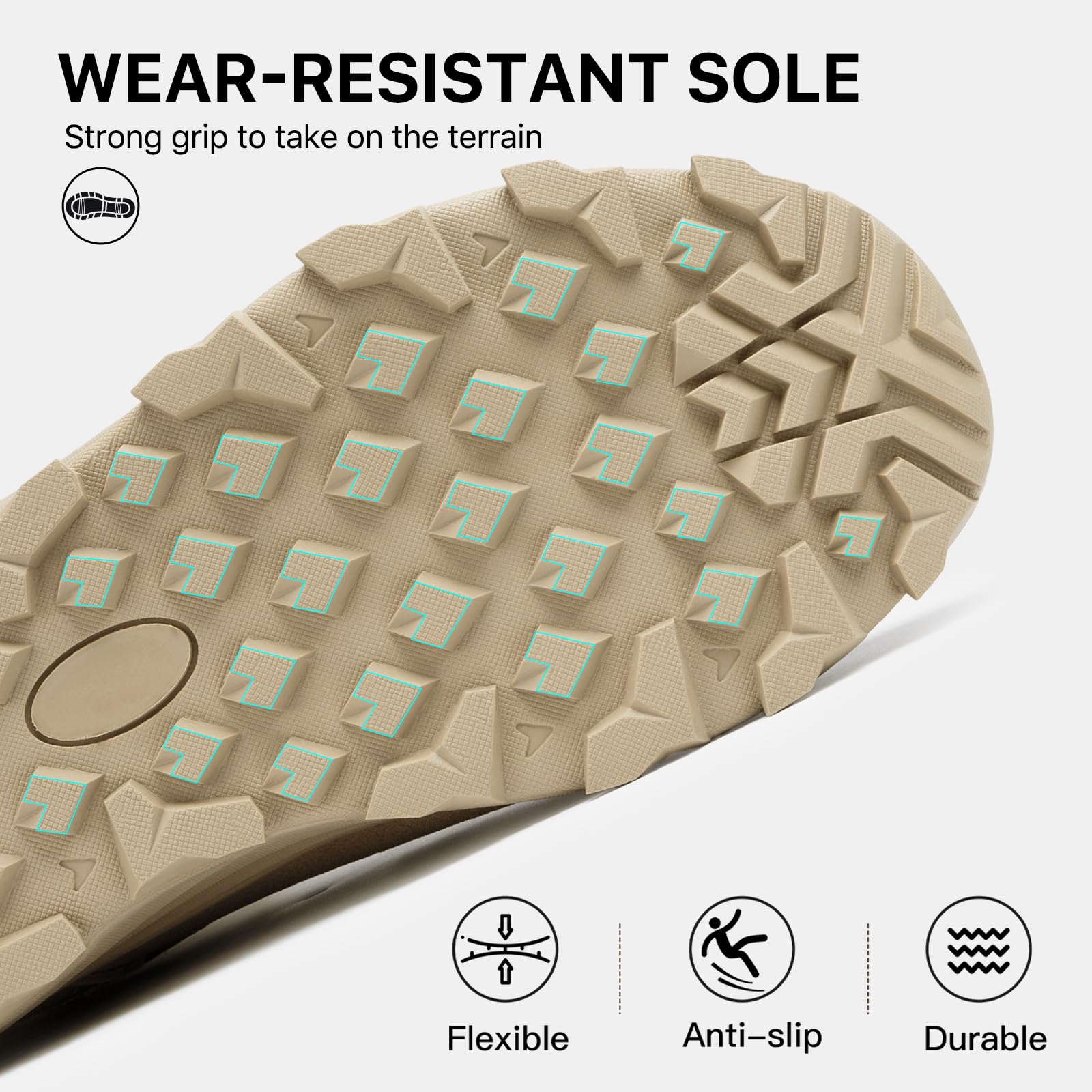 - NON-SLIP RUBBER OUTSOLE & ANKLE SUPPORT: The high-traction outsole grips any terrain, while reinforced ankles in these tactical boots for men offer stable support.