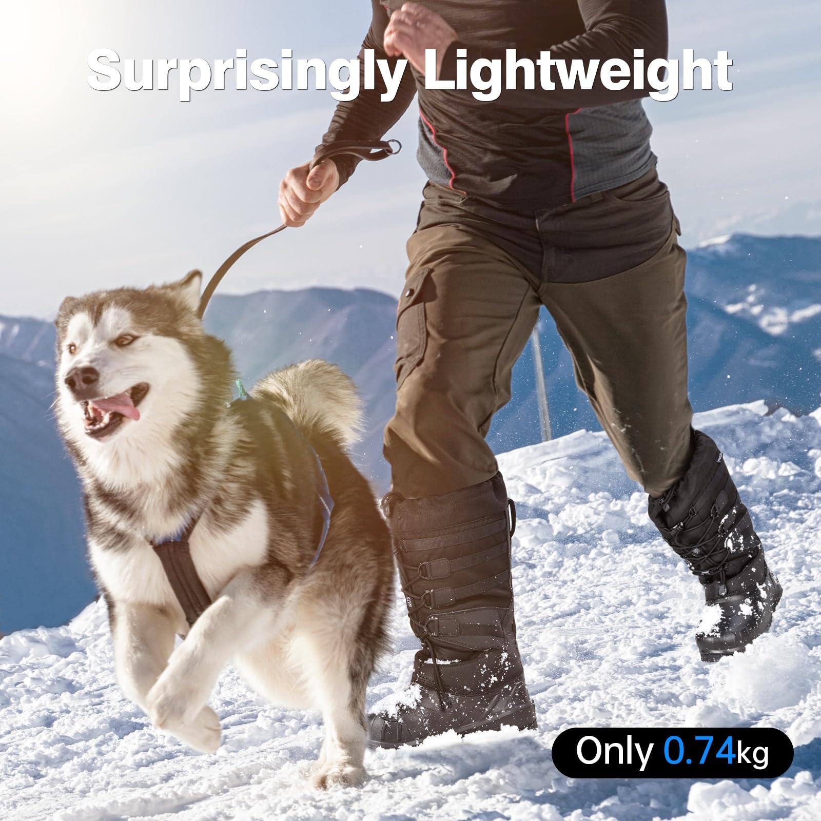 • EVA WATERPROOF SHELL AND WATERPROOF NYLON UPPER: Ultra-lightweight EVA-sealed waterproof snow boots for men feature a shell that acts like an invisible shield, effortlessly deflecting wind and snow while effectively insulating against snow and moisture, ensuring your feet stay dry all day long. Crafted with a waterproof nylon upper that's both wear-resistant and cold-resistant, the men's winter boots make tackling snowy challenges