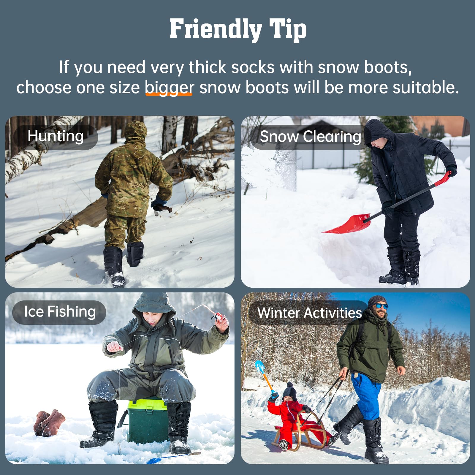 • TALL DESIGN,EFFICIENT WARMTH,MULTI-OCCASION USE: This men's snow boot is suitable for a variety of winter activities. It is well for dog walking, snow plowing, ice fishing, camping,hiking,climbing, snow games, winter sports, and outdoor activities. The men's snow boot is ideal for outdoor winter pursuits due to its versatility, comfort, and stylish appearance