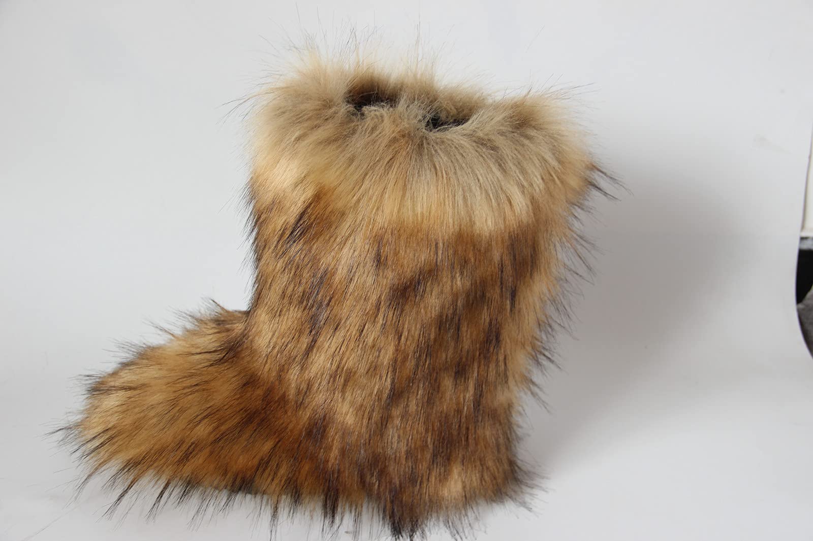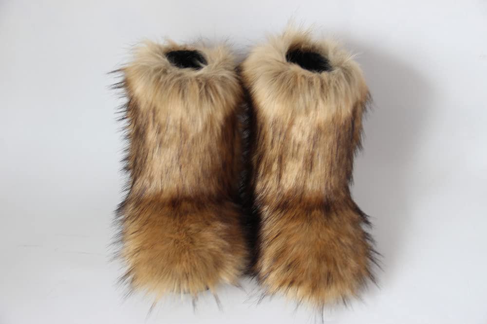 Gegefur Women's Faux fur Boot Furry Fluffy Short Snow Boot Mid-Calf Boots Warm Comfortable Outdoor Flat Shoes (Faux Raccoon, numeric_6)