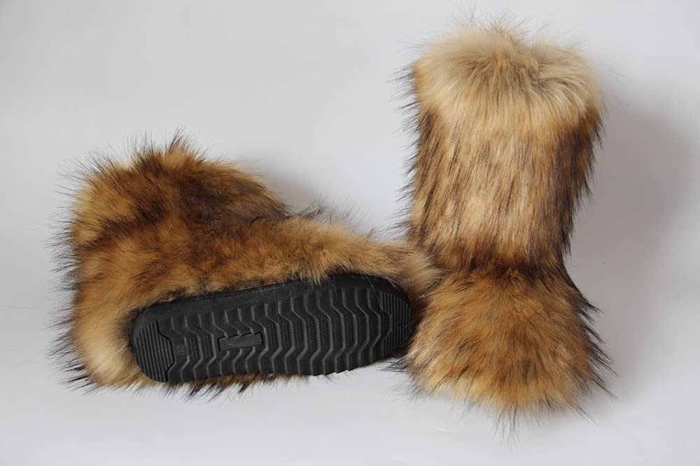 - Please note to all customers: The faux fur are very fluffy. They are packaged in plastic packaging and will be deformed during transportation. After being dragged, the hair of the imitation-fur snow boots will be pressed, and the hair will not be fluffy after being pressed. Please use a hair dryer (home) to blow more, and the effect of blowing the hair like the picture we took will be OK!
