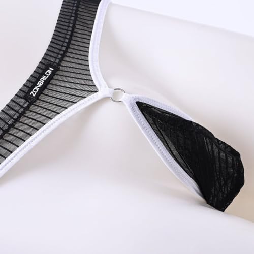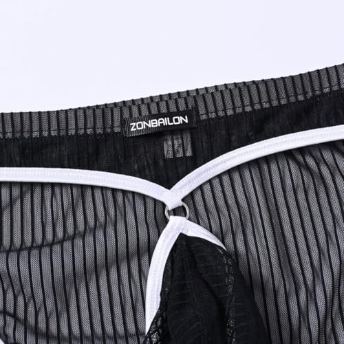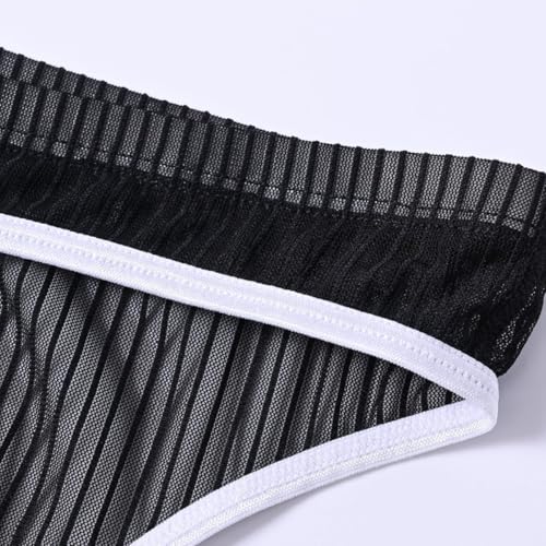 JINSHI Mens See Through Breathable Briefs with Bulge Pouch (Black 1-Pack, Medium)