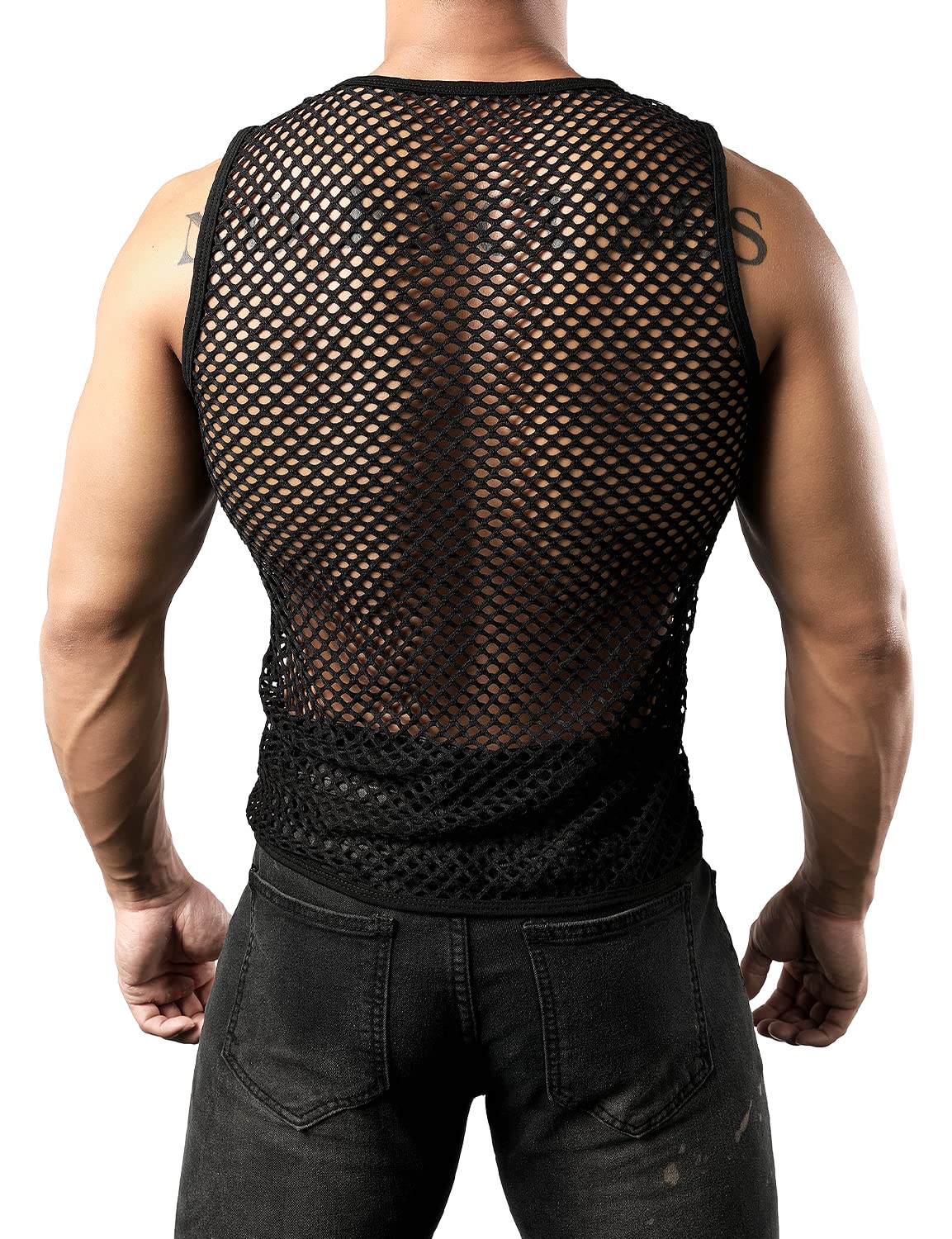JOGAL Men's Mesh Fishnet Fitted Sleeveless Muscle Top XX-Large WG01 Black