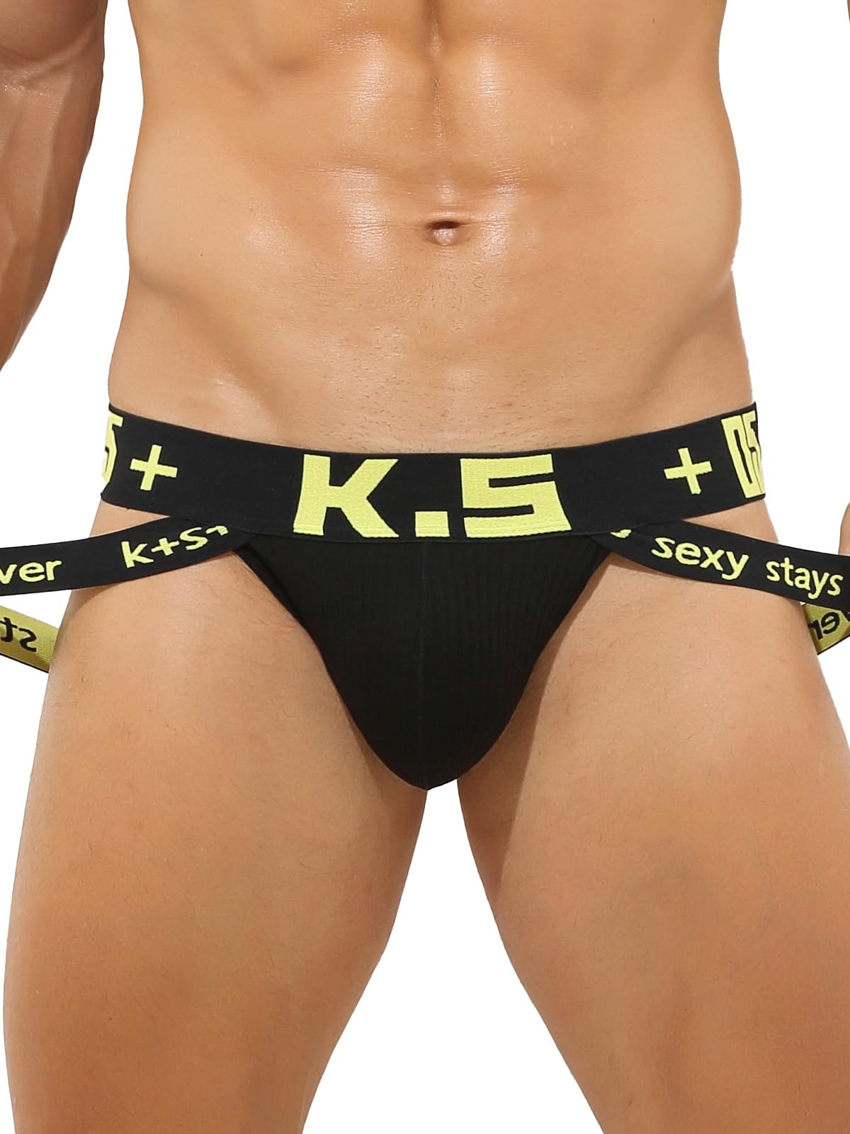 KAREN SPACE Men's Jockstrap Underwear Cotton Athletic Supporter Mens Thongs Sport Underwear Jock Strap,1923SD-Black,Large