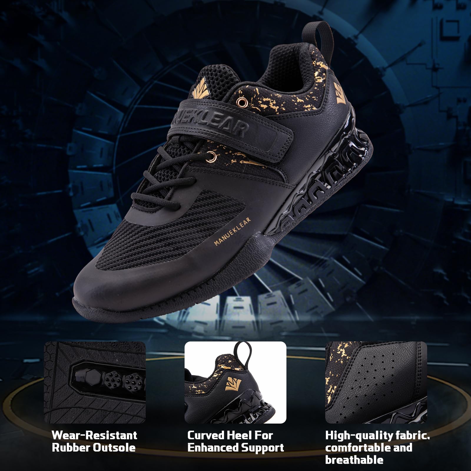 MANUEKLEAR Strong Anti-Slip Deadlift Lifting Squat Shoes for Men, Professional Training Weightlifting Shoes for Men and Women with Rubber Non-Slip Sole Obsidian Black