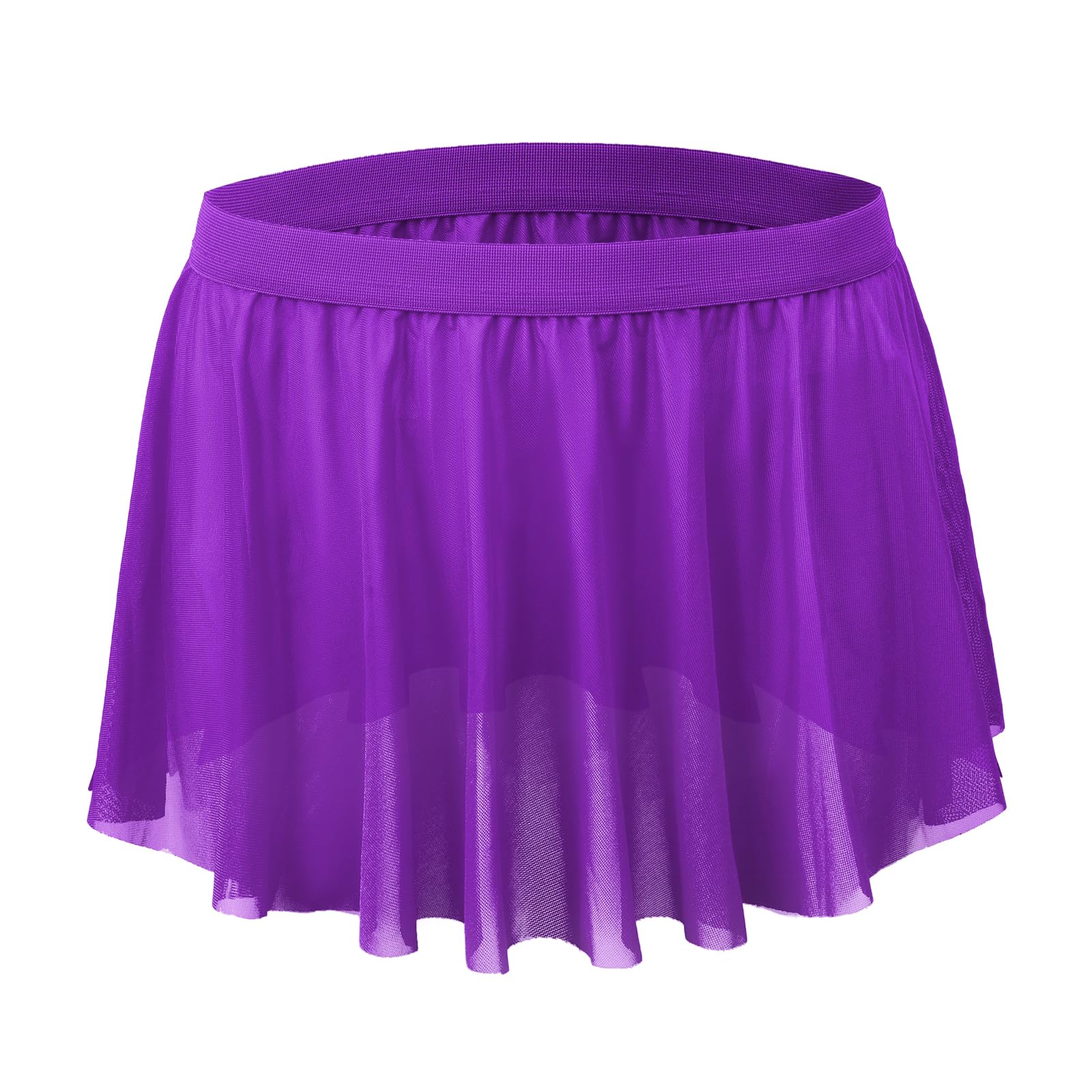 Men’s Mesh Skirt Sexy Sheer Mini Skirt Cross-Dressing Sissy Tulle Lingerie See Through Skirt Nightwear Gay Underwear Purple