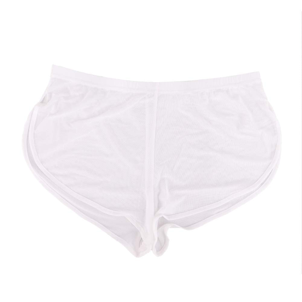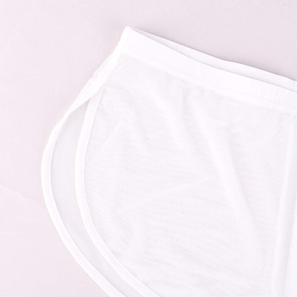 Mens Mesh Shorts See Through with Large Split Sides Sexy Sheer Boxers Underwear White 2XL