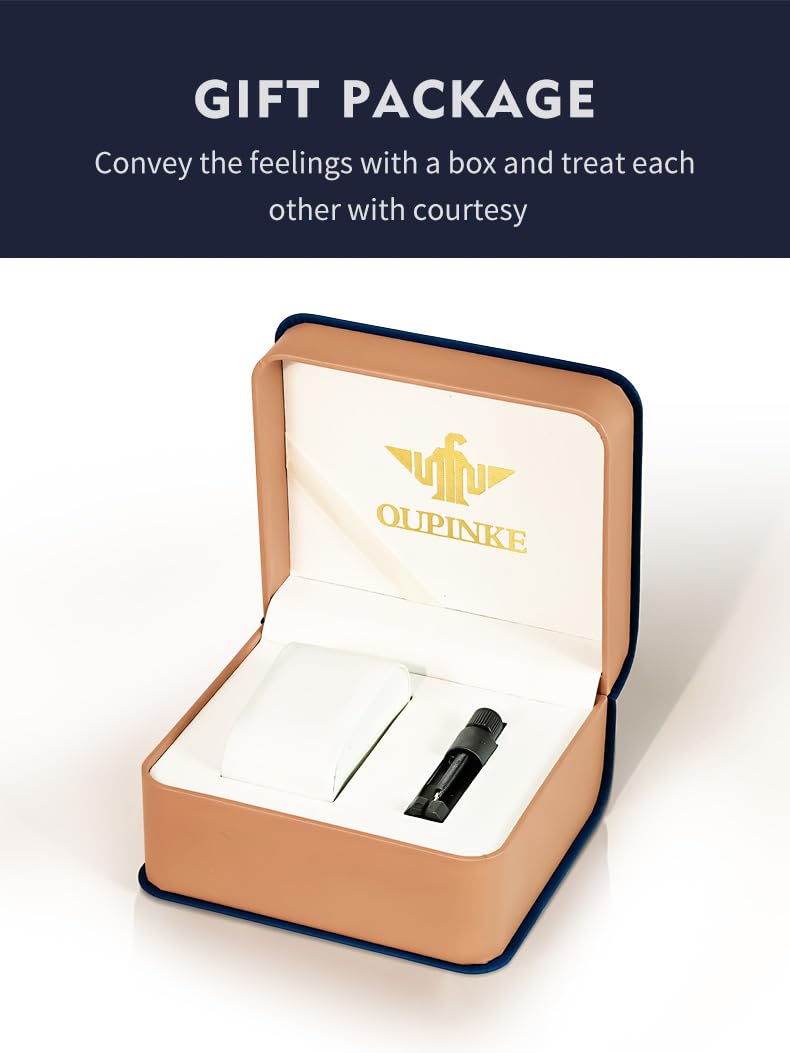- ⌚Multifunctional Watch:OUPINKE men's mechanical watch adopts 3D three-dimensional Roman scale fully automatic mechanical movement, calendar and time dual display,built-in 24 synthetic ruby bearings,improve the stability and accuracy of travel time,and is a luxurious choice among high-end business dress men's watches.