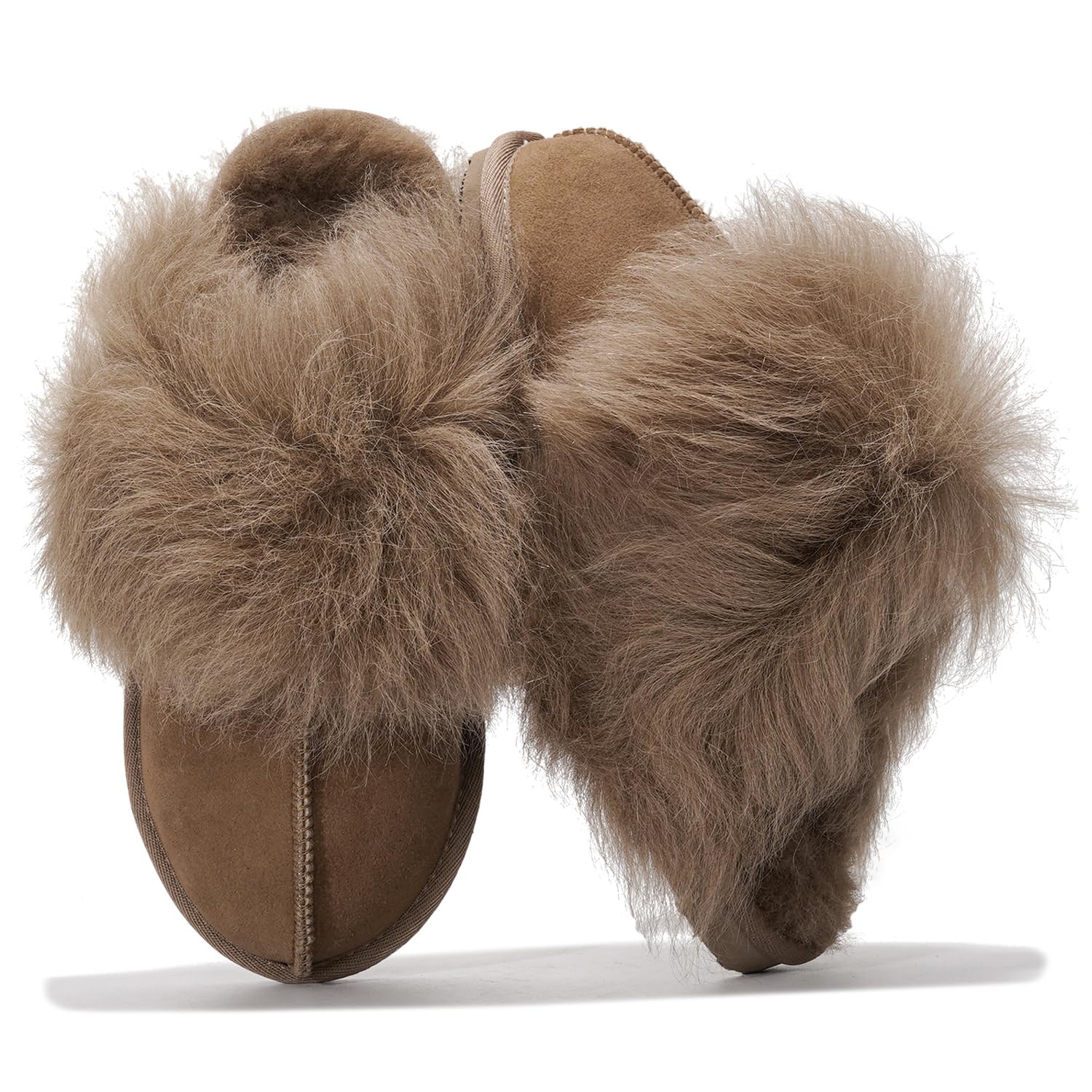 - 𝗚𝗲𝗻𝘂𝗶𝗻𝗲 𝗦𝗵𝗲𝗲𝗽 𝗙𝘂𝗿 𝗟𝗶𝗻𝗶𝗻𝗴: Lined with plush, genuine sheep fur, these fuzzy slippers offer an indulgent, fuzzy texture that envelops your feet in cozy warmth. The soft, thick fur adds a luxurious touch while keeping your feet snug. These christmas slippers for women make a perfect gift for her.