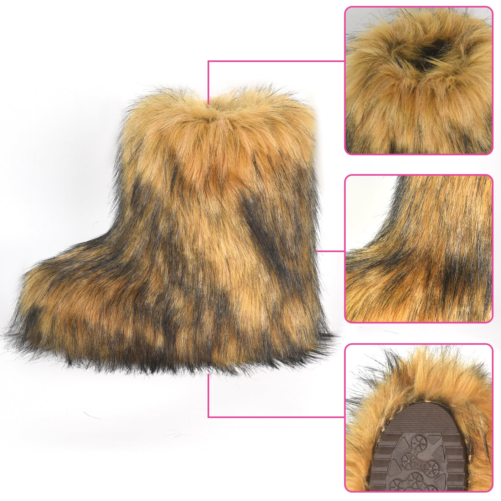 - 【Warm fashion】: The interior is covered with soft fluff material, which can effectively keep your feet warm and resist the invasion of cold, whether in the cold winter or cold outdoor environment, they can provide you with a reliable warm effect, while the imitation brown fur boots for women have good air permeability, keep your feet dry and comfortable,fluffy boots y2k keep your feet away from sweat and heat.