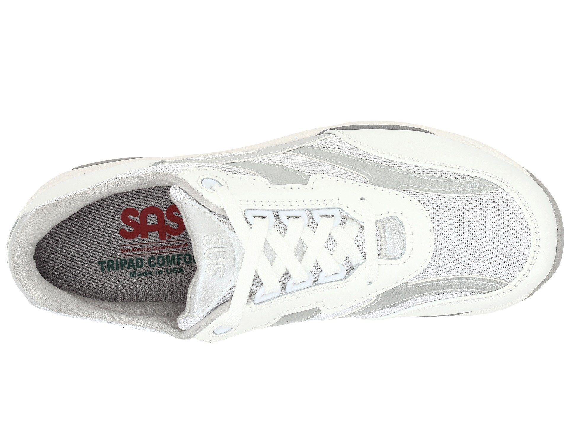- SAS TRIPAD CUSHIONS: These sports shoes for women feature SAS Tripad Cushions that are designed to offer comfort on all three pressure points: the inside ball, outside ball, and heel for all-day support. The soft and breathable textile linings keep your feet dry and sweat-free, making for comfortable for all-day wear. These SAS Tour Mesh shoes come in different colors - Black, Blue, Black/Silver, Dust, Lago Vista, Plata Mix, Red Multi, Silver, and Taupe Pink.