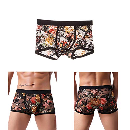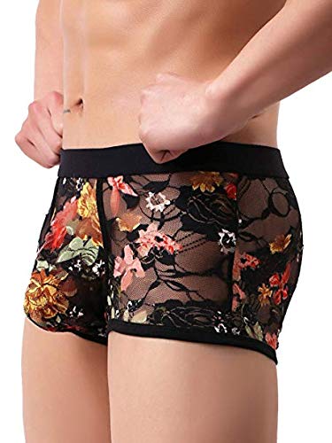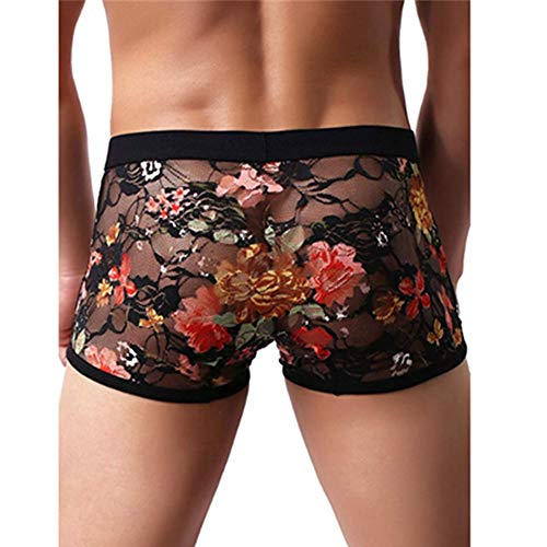Sexy Men's Boxers Briefs Transparent Lace Underwear (L, Black)