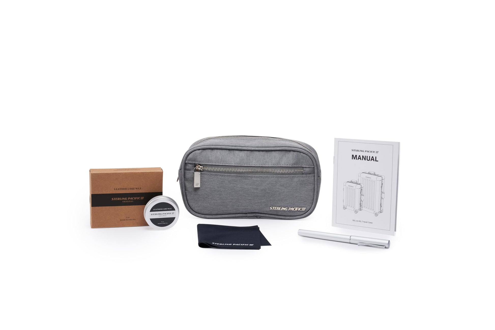 Sterling Pacific 40L Cabin Travel Case – Full Aluminum Four Wheel Carry On Luggage, Italian Leather Handles