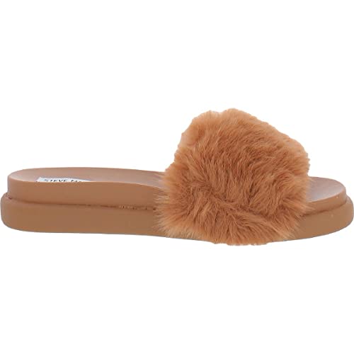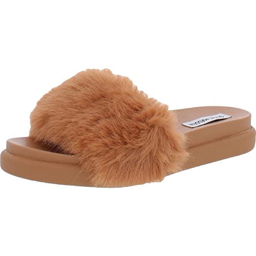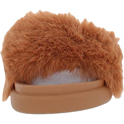 Steve Madden Womens Delphina Faux Fur Slide Slippers Tan 9.5 Medium (B,M)