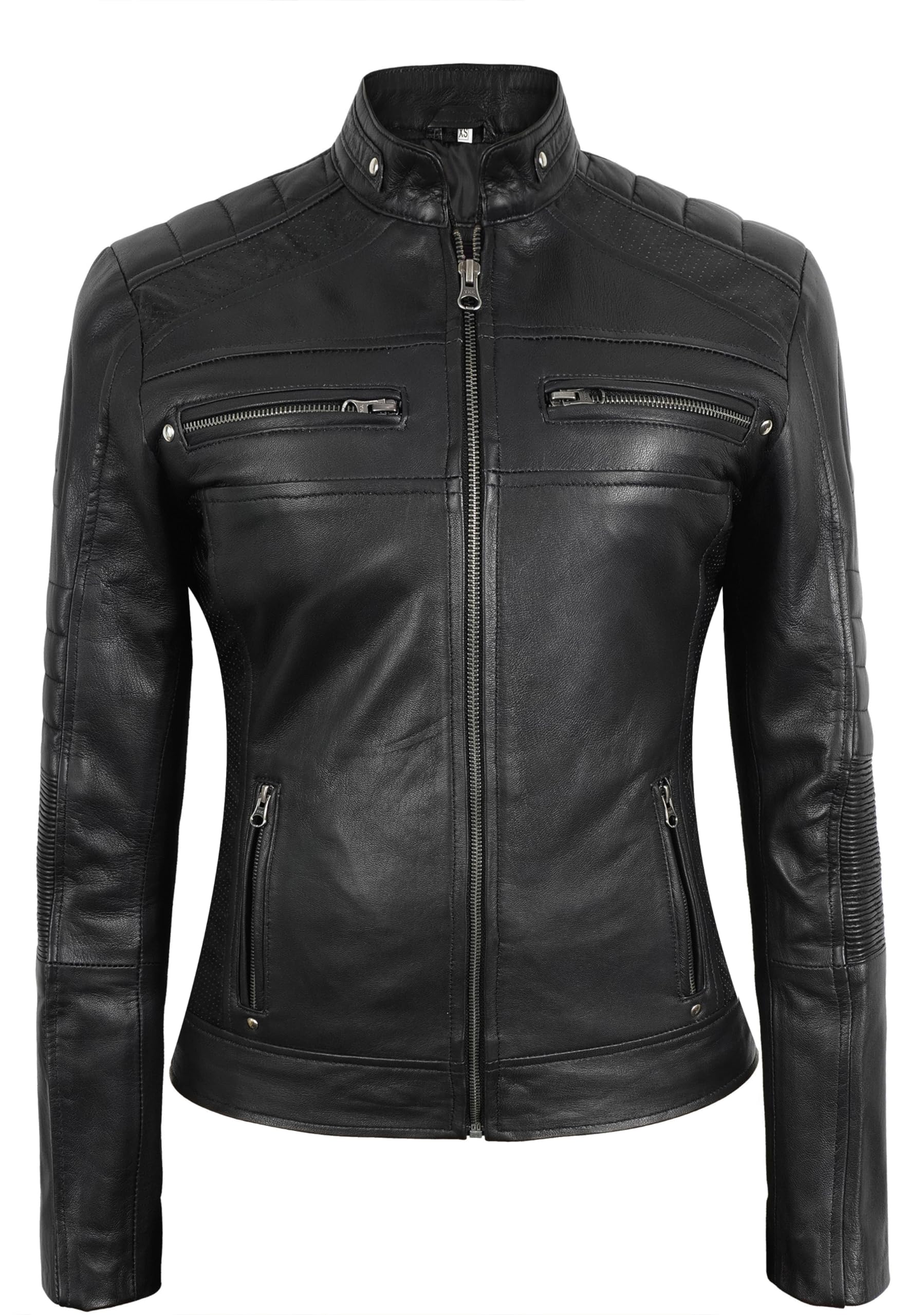 - ✔ Tailored Fit for Every Body: Available in a range of sizes XS to XXXL, our womens leather motorcycle jacket offers a tailored fit that suits various body types, ensuring comfort and style for everyone. For the ideal fit, consult our size chart available in the images.