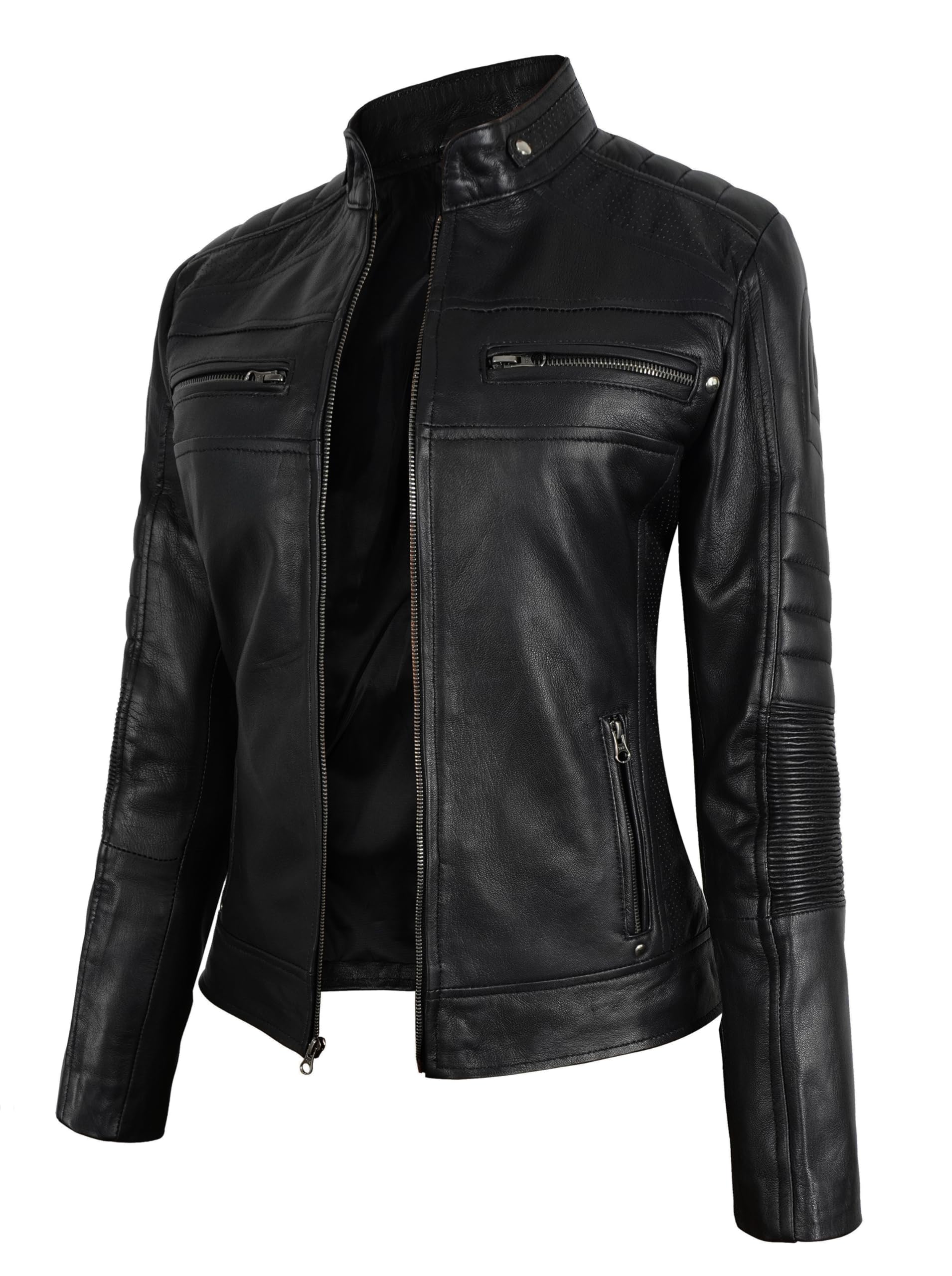 - ✔ Exceptional Quality Leather: Our leather jacket women are expertly manufactured from lambskin leather of the highest quality, guaranteeing lasting durability and a distinctive, opulent appearance.