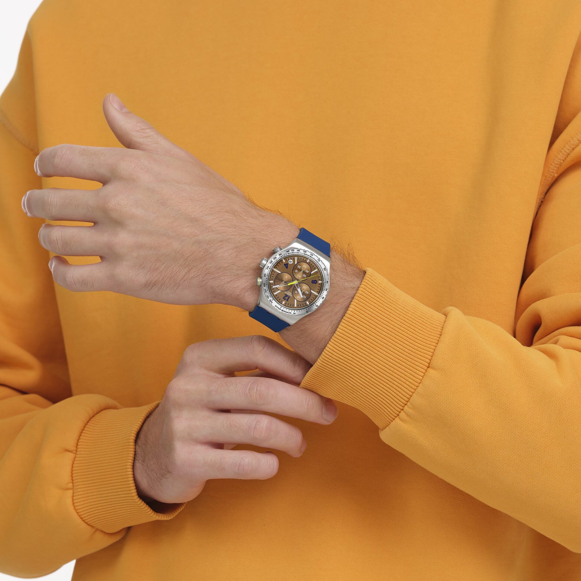 Swatch New Irony Chrono Unisex Dress Watch Stainless Steel Brown Quartz Water Resistant SIDEREAL Glow
