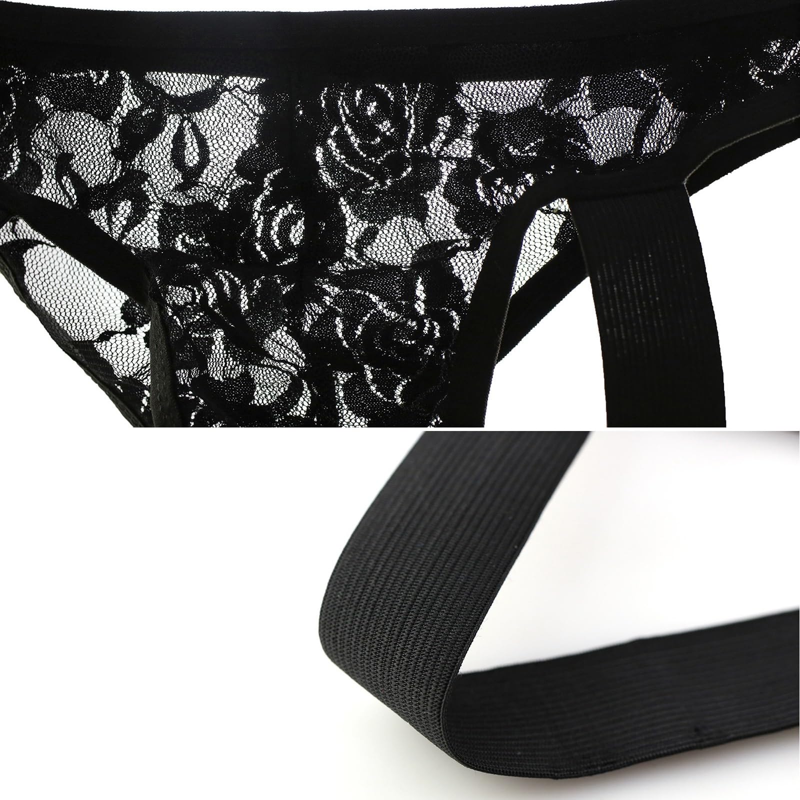 UIWFJEH Men'S Lingerie Panties Bikini Men'S Lace See-Through Thong Double Thong Panties Low Rise Sexy Erotic Underwear,Black,M