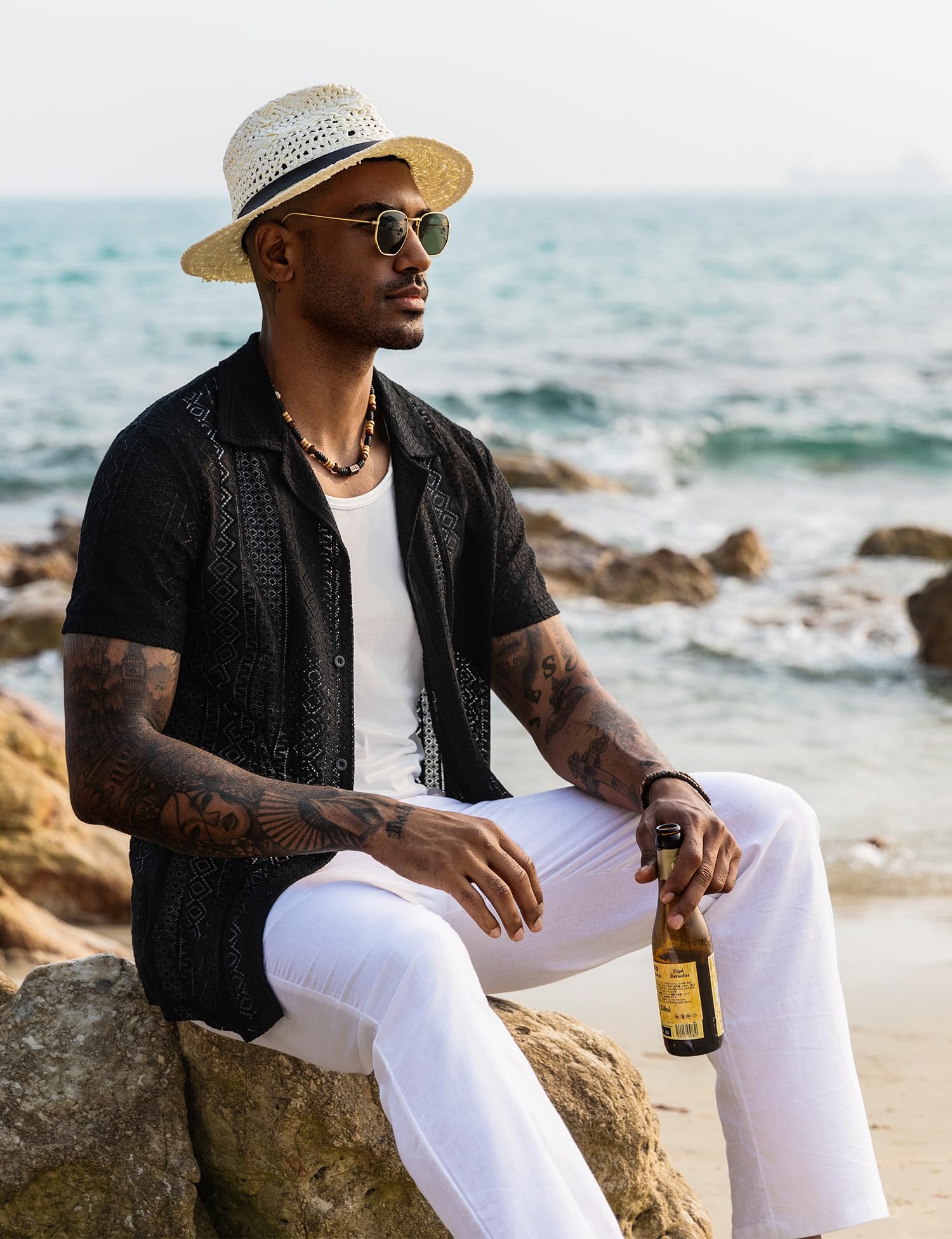 - FASHION MENS LACE SHIRT - This mens stylish and cool sheer lace shirt can be easy to match with shorts, jeans, casual pants, or worn as a undershirt paired with a coat for a relaxed daily look. If you choose our mens lace button down shirt, it will bring you a confident, comfortable and happy time.