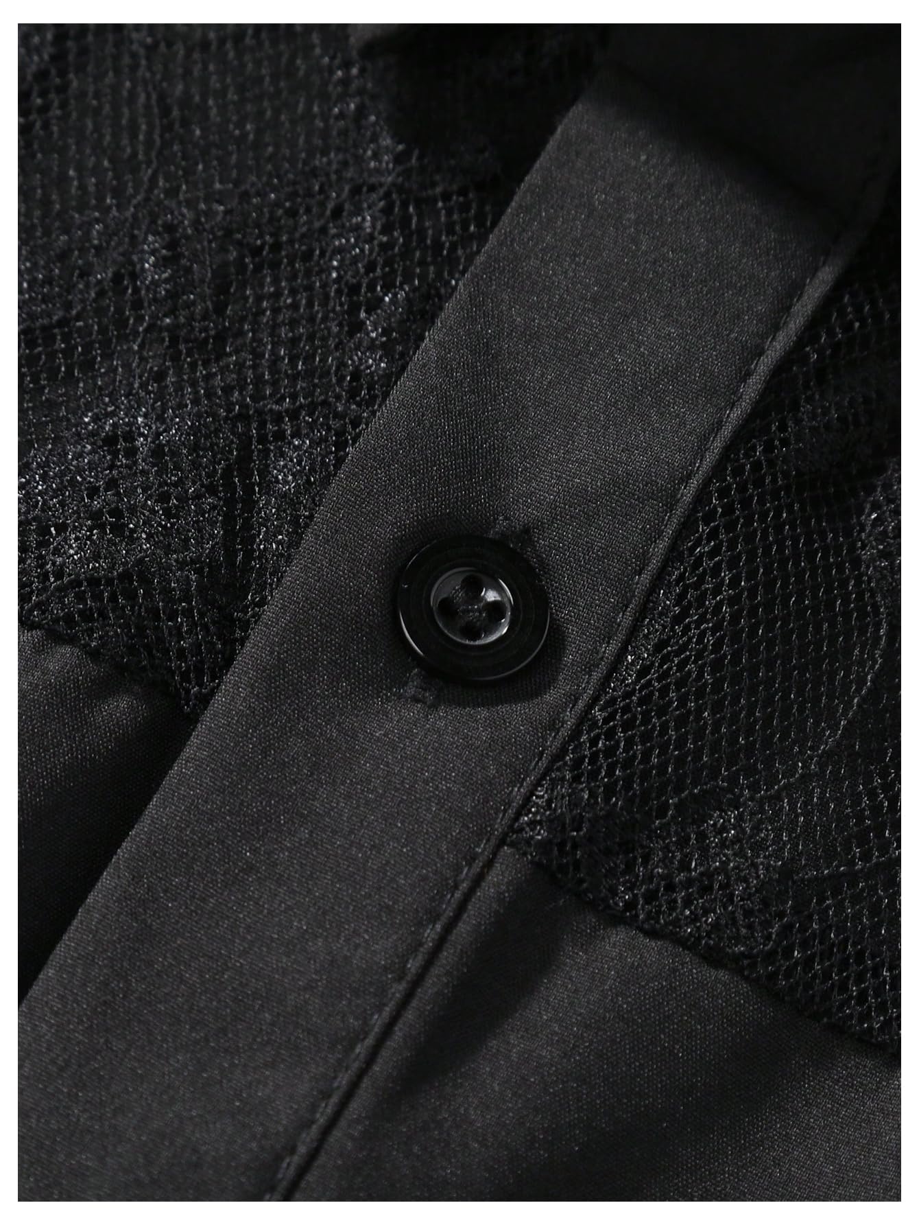 - Features: Mens shirts feature a collared neck, button front, contrast lace, see through, short sleeve